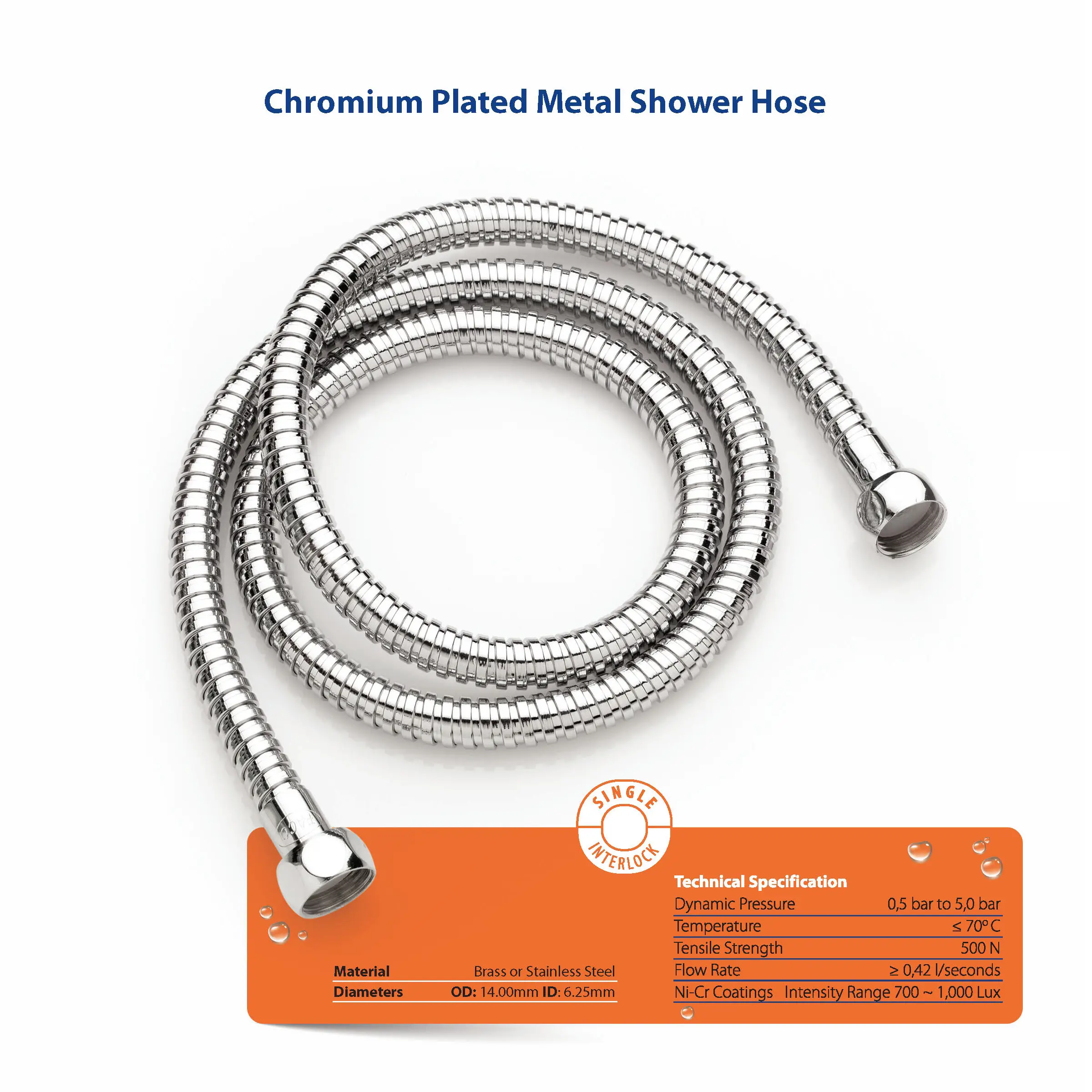 1. Chromium Plated Metal Shower Hoses (SS 200 & 300 series, non-braided)